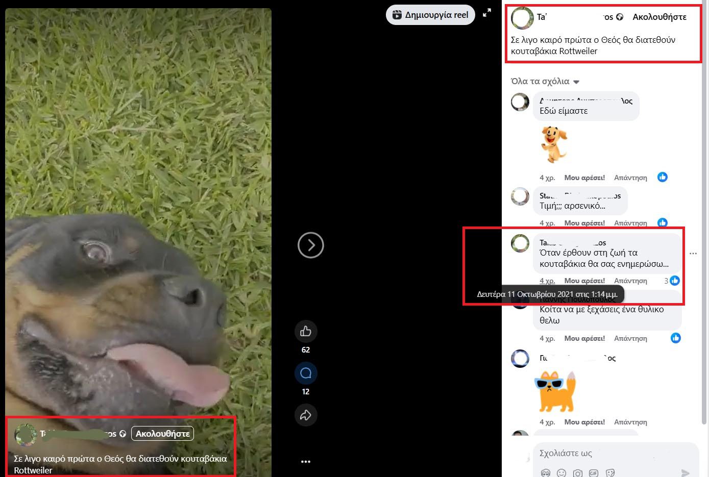 Καθώς πρόκειται για υπόθεση που απασχολεί το Πανελλήνιο πρέπει να επισημάνουμε ότι στο προφίλ του γιου του 76χρονου υπάρχουν βίντεο με Ροτβάιλερ καθώς και μια αγγελία δημοσιευμένη τον Οκτώβριο του 2021 για πώληση κουταβιών που θα γεννηθούν...
