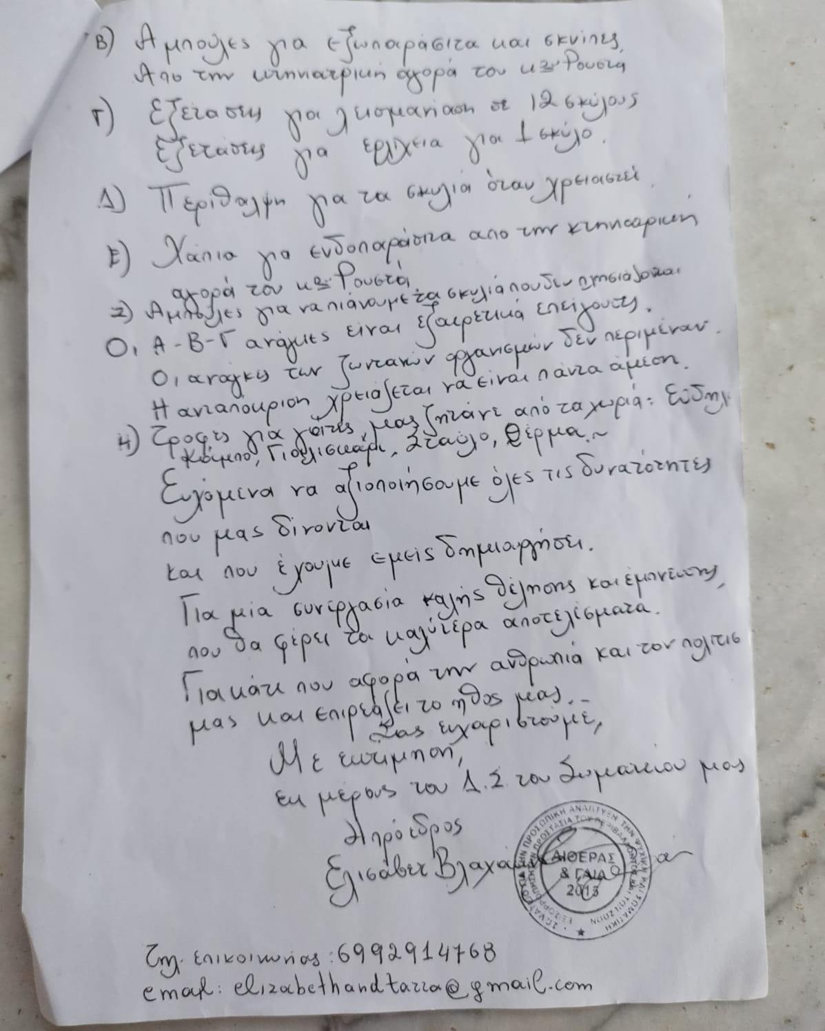 Θεώρησα σωστό να καταγγείλω την αδιαφορία του δήμου στο γραφείο της Ειδικής Γραμματέας για την προστασία των ζώων συντροφιάς.