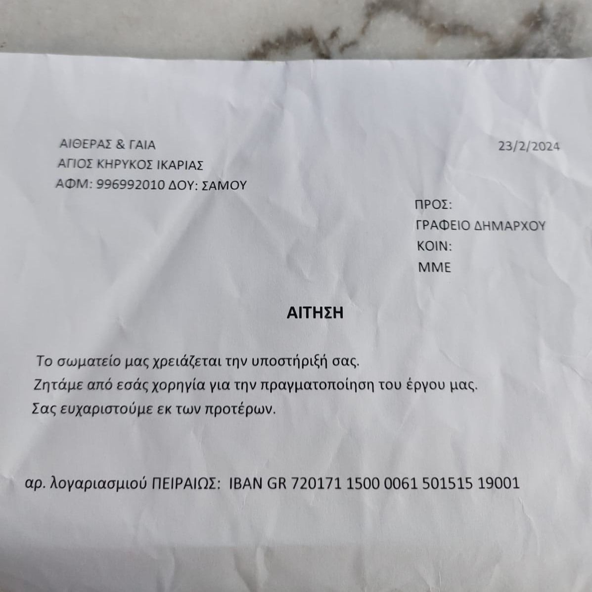 Στις 29/4/24 έστειλα επιστολή/καταγγελία στο γραφείο της Ειδικής Γραμματέα και ζητούσα την παρέμβαση της ώστε η νέα δημοτική αρχή του δήμου Ικαρίας να συμμορφωθεί εφαρμόζοντας τα προβλεπόμενα μέτρα της κείμενης νομοθεσίας (Συνημμένα 1 και 2).