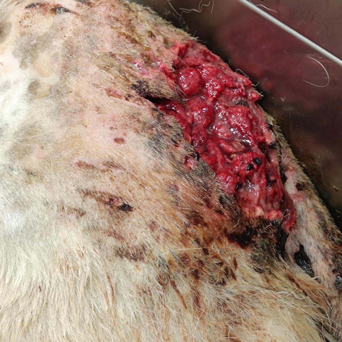 Το ζώο επέζησε αλλά τα τραύματα του είναι σοβαρά και παραμένει στο κτηνιατρείο. Το θέμα είναι τι θα απογίνει αυτό το πλάσμα μετά. Αν επανενταχθεί κινδυνεύει εκ νέου…