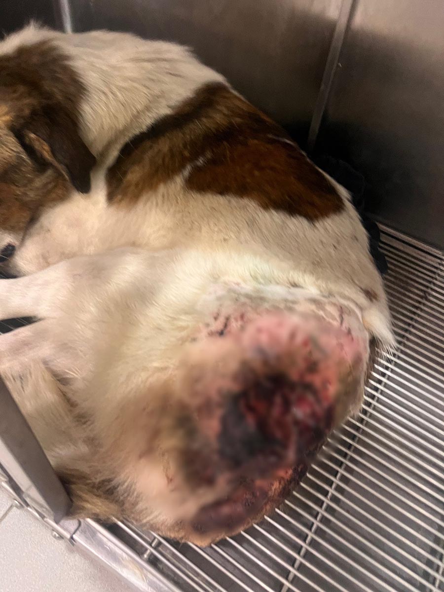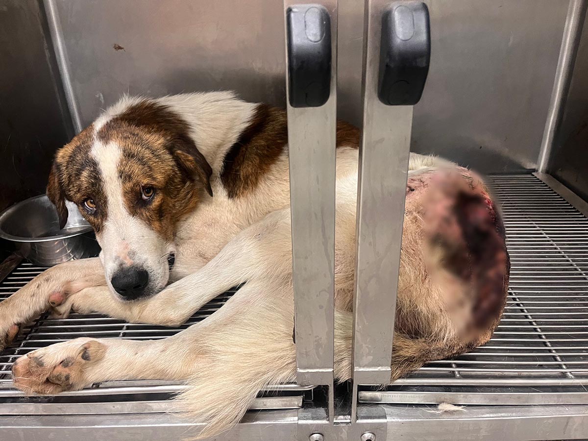 Ένας άνθρωπος τον σημάδεψε και τον άφησε να αιμορραγεί στο δρόμο, με μια τεράστια, μολυσμένη πληγή στο πόδι.
