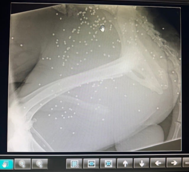 Στις 3 Οκτωβρίου φιλόζωοι εντόπισαν ένα από τα ελάχιστα σκυλιά που έχουν επιζήσει στο Κρυονέρι Αιτωλοακαρνανίας πυροβολημένο. Η αρχική εντύπωση του κτηνιάτρου ήταν ότι το σκυλί έχει δαγκωθεί από άλλο ζώο εντούτοις η ακτινογραφία έδειξε τι έχει συμβεί. Το σώμα του είναι γεμάτο σκάγια…
