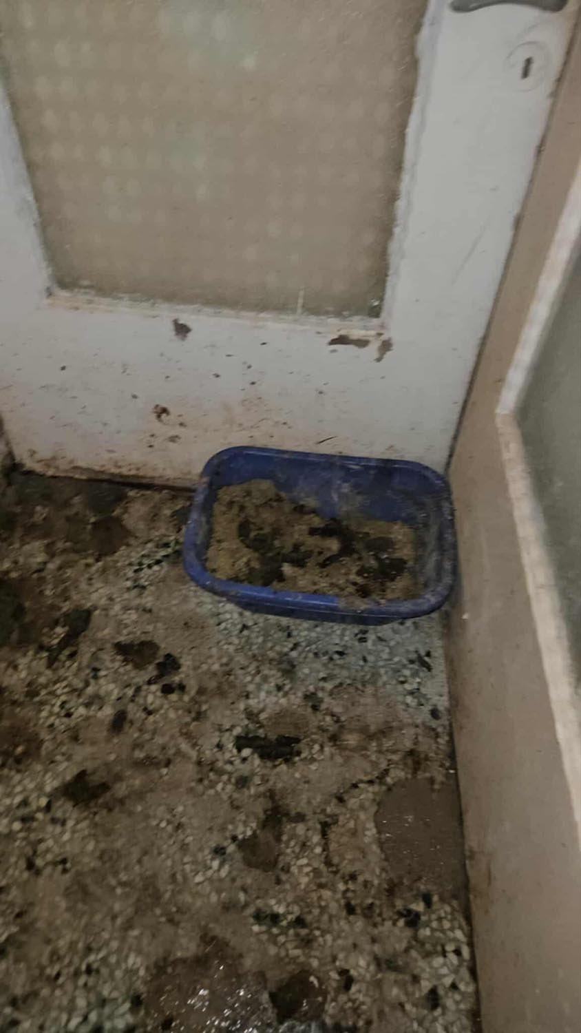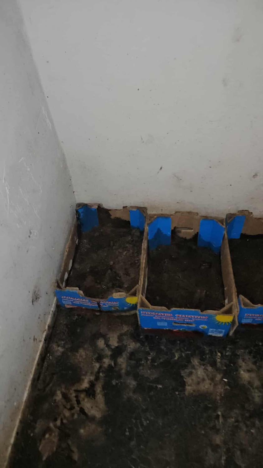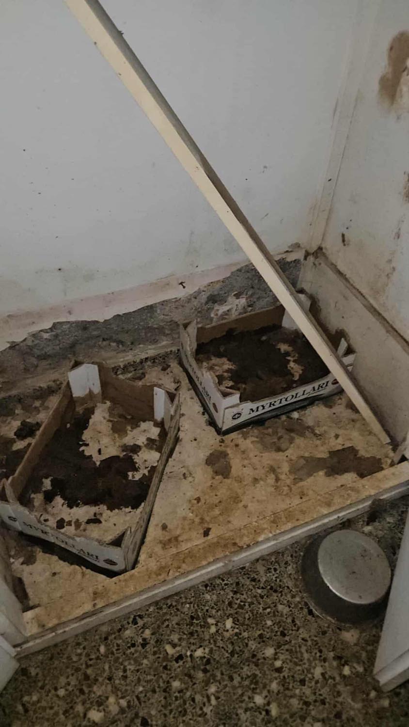 Τα ζώα όλα αστείρωτα είναι μεν σε καλή διατροφική κατάσταση αλλά ο χώρος ήταν γεμάτος κόπρανα και ούρα. Οι ακαθαρσίες τους δεν είχαν καθαριστεί για μήνες… Τα δοχεία του νερού και της τροφής ήταν τελείως άδεια…