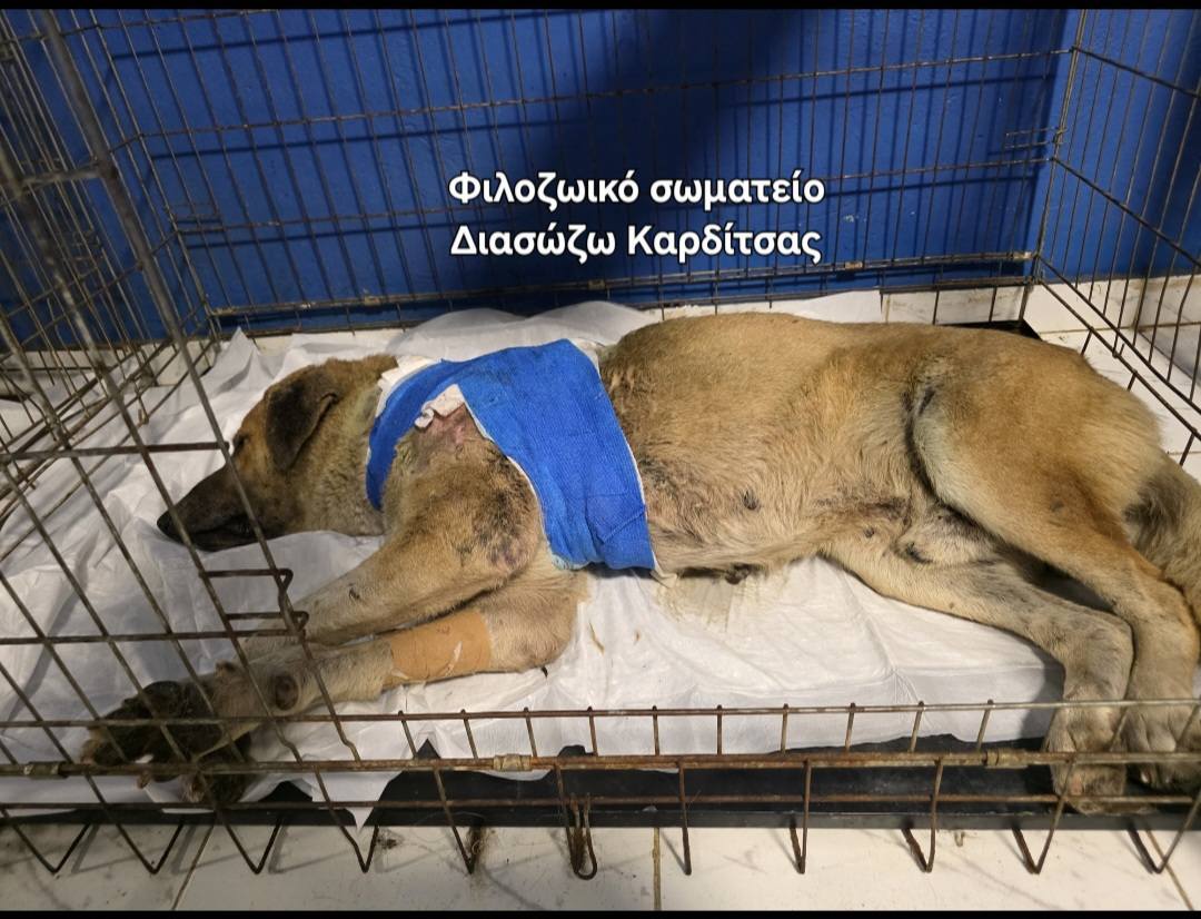 Βαριά τραυματισμένος μεγαλόσωμος σκύλος στα Σφαγεία Καρδίτσας...