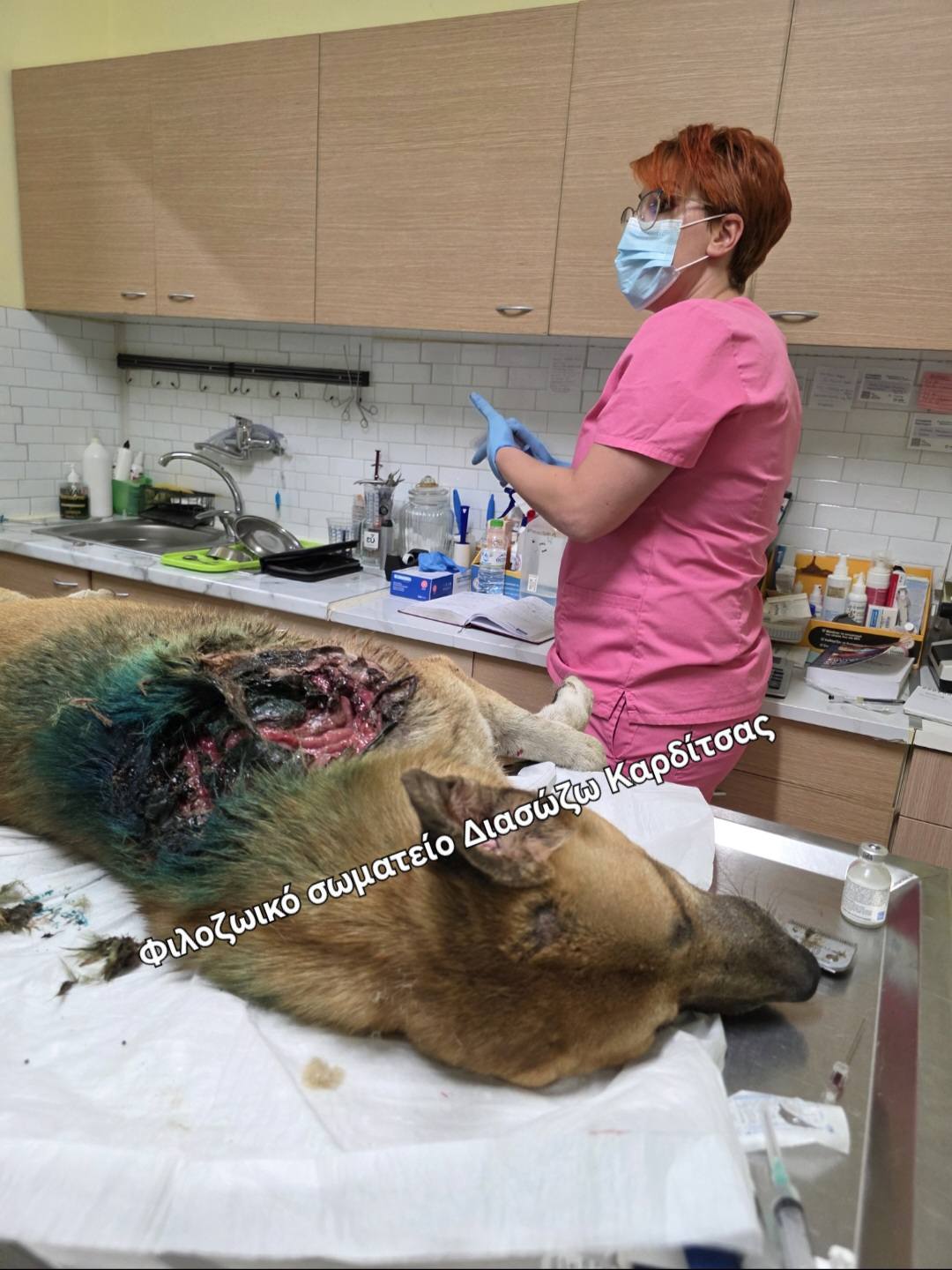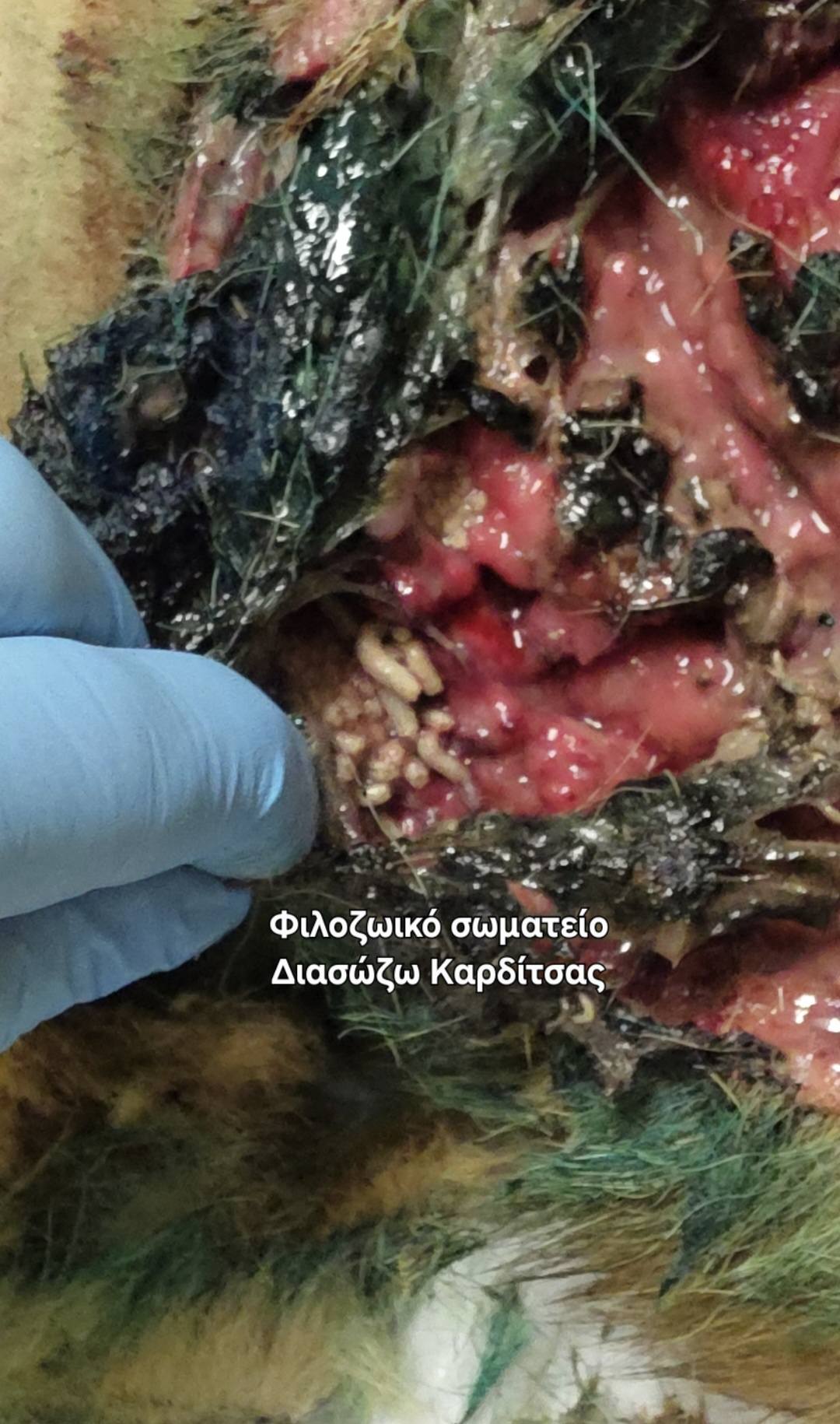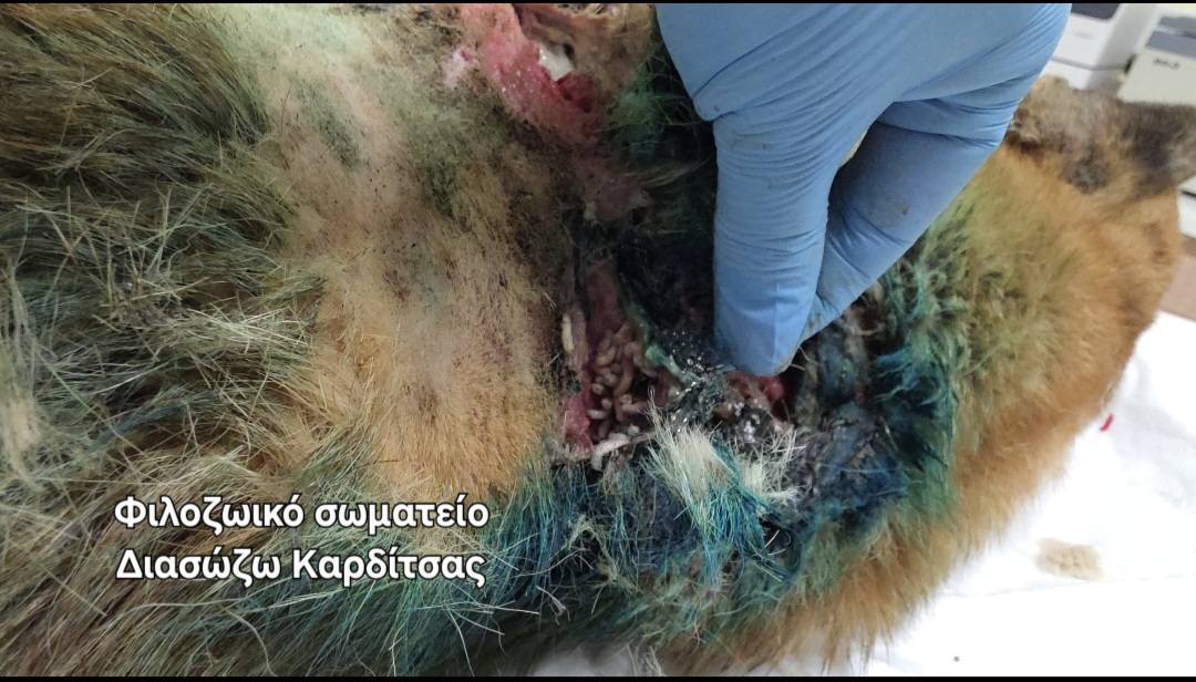 Τον σκύλο που σάπιζε κυριολεκτικά ζωντανός κλήθηκαν να σώσουν εθελοντές οι οποίοι ενημερώθηκαν για ένα ανήμπορο πλάσμα το οποίο εντοπίστηκε σε οικτρή κατάσταση στην περιοχή των Σφαγείων Καρδίτσας με μια τεράστια πληγή στην κοιλιά του που ήταν ήδη γεμάτη σκουλήκια εξαιτίας της σήψης.