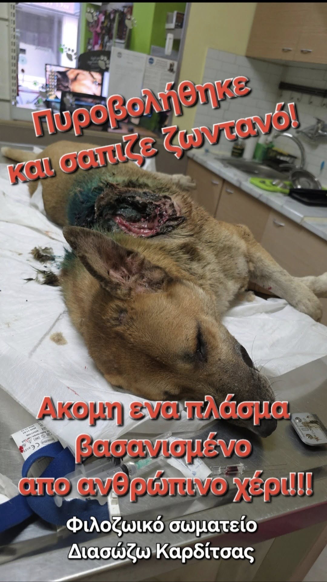 Το περιστατικό με το πυροβολημένο σχεδόν εξ επαφής σκυλί έφερε σήμερα στη δημοσιότητα η Ερμιόνη Γιαννακού, εκ μέρους του Πολιτιστικού και Φιλοζωικού Σωματείου «Διασώζω», η οποία εξηγεί ότι ο σκύλος νοσηλεύεται στο κτηνιατρείο της Ουρανίας Σακαρίκου σε κρίσιμη κατάσταση.